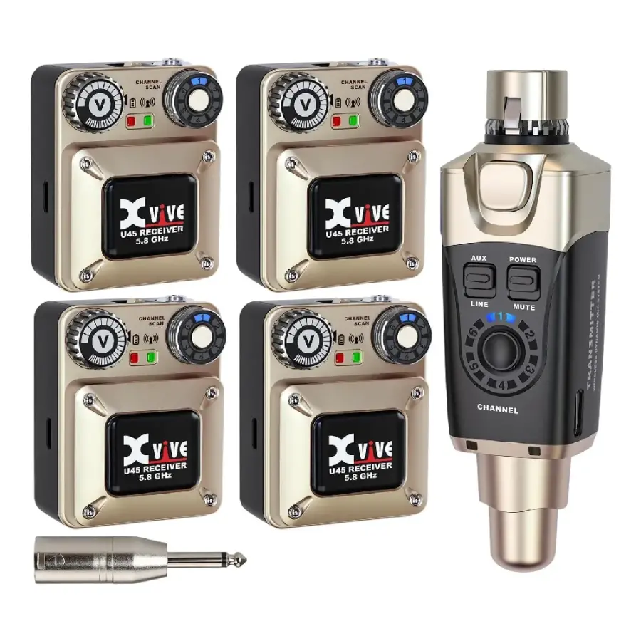 Sistem; bir adet XV-U45T verici ve dört adet XV-U45R alıcı içerir. Bu yapı, aynı miks sinyalinin dört farklı kullanıcıya eşzamanlı olarak kablosuz iletilmesini mümkün kılar. Grup performansları, çok kişili vokal ekipleri, sahne gösterileri ve kurumsal etkinliklerde pratik bir çözüm oluşturur. USB-C hızlı şarj desteği sayesinde tüm birimlerin şarjı 1.5–2.5 saat içinde tamamlanabilir ve her biri 5 saate kadar kesintisiz kullanım sunar.