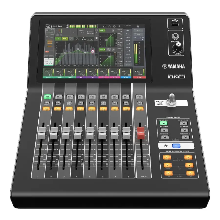 Canlı yayın gereksinimleri için özel olarak optimize edilen Yamaha DM3, matrisler, esnek patch ayarları ve özel ön ayarlarıyla ek donanım ihtiyacını ortadan kaldırır. 18 giriş ve 18 çıkış destekli USB ses kartı özelliği sayesinde doğrudan DAW yazılımlarına çok kanallı kayıt yapabilir veya kompakt yapısıyla çoklu konsol konfigürasyonlarında yardımcı yayın mikseri olarak görev alabilir. DAW Remote modu ile bilgisayarınızdaki kayıt yazılımlarını fiziksel faderlar üzerinden kontrol etmenize olanak tanırken, beraberinde gelen Cubase AI ve VST Rack Elements yazılımlarıyla prodüksiyon sürecinizi eksiksiz bir şekilde destekler.