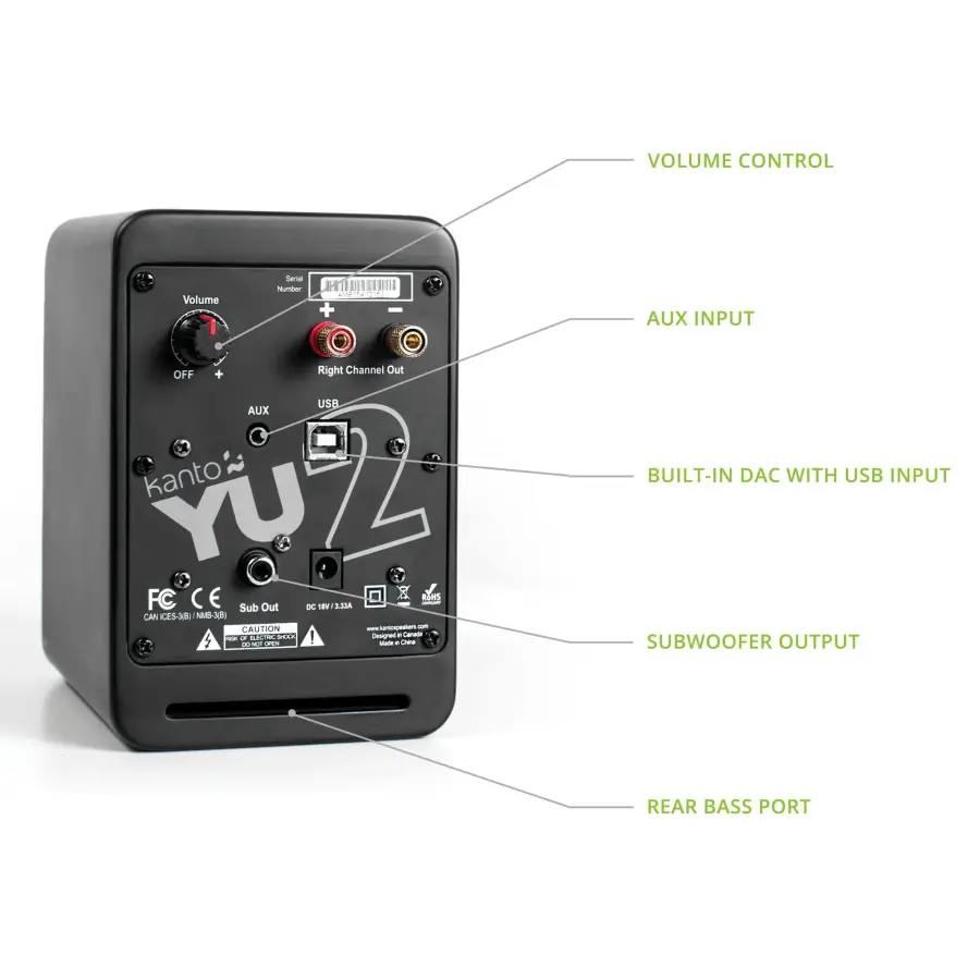 YU2 | 100W Watt 3'' Aktif Hoparlörler, Bluetooth® - Mat Siyah